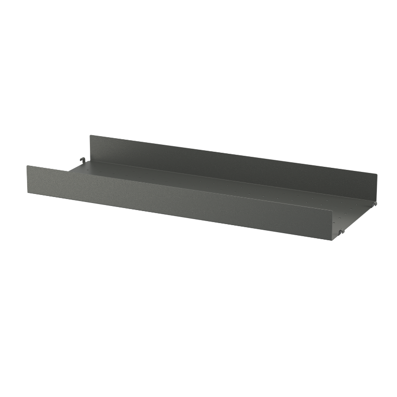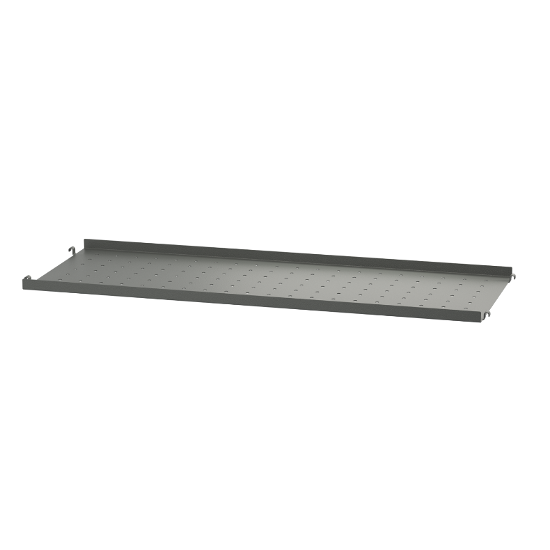 Mensola in metallo laccato opaco goffrato nei colori : nero, bianco, beige e grigio. I ripiani sono in lamiera piegata e fanno un corpo unico con gli apposti sostegni per essere agganciati ai montanti della stessa serie.Il piano è forato per poter predisporre dei ganci sospesi ed altri accessori, come ad esempio gli appendiabiti o gli scolapiatti…